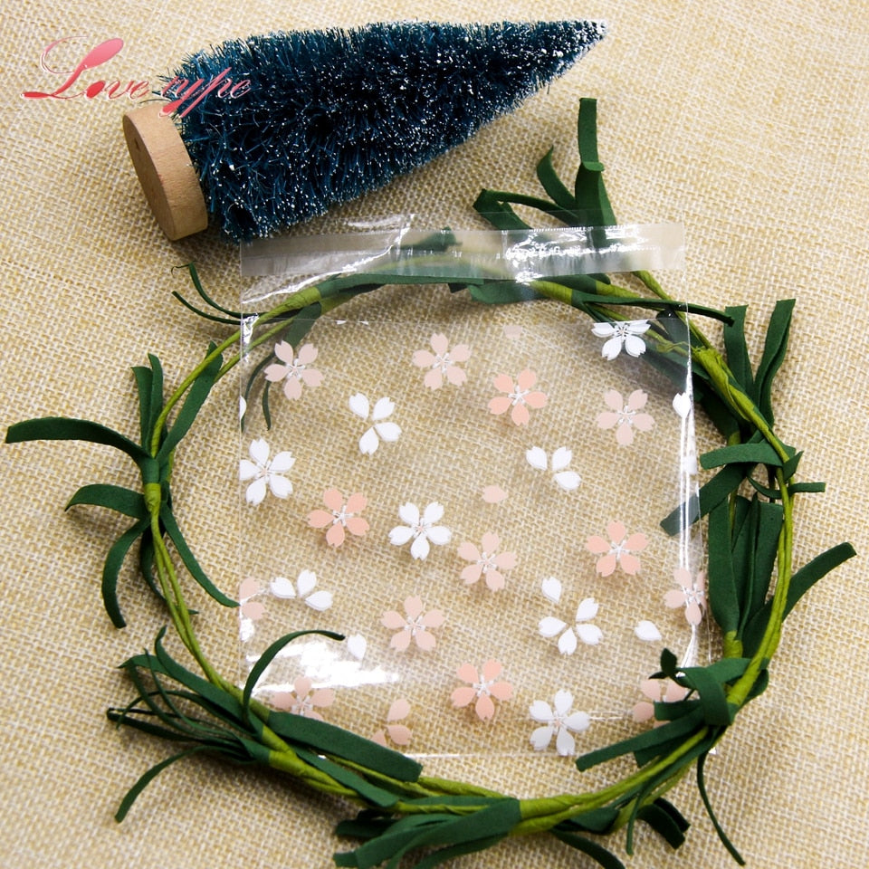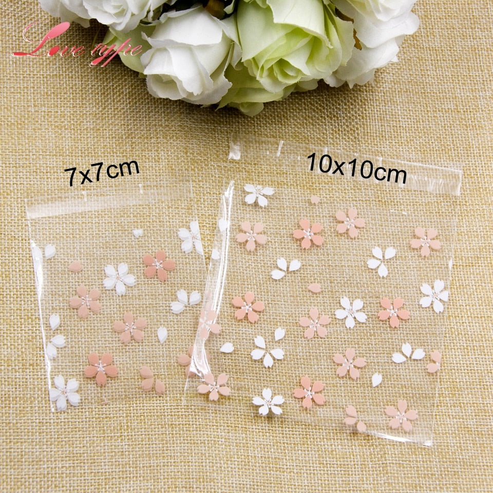 100PCS Cherry Blossoms Candy &Cookie Plastic Bags Self-Adhesive For DIY Biscuits Snack Baking Package Decor Kids Gift Supplies