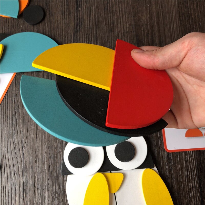 3D Wooden Jigsaw Puzzle Animal Modeling Early Education Geometric Tangram Wooden Game Toys for Children Montessori Learning