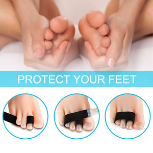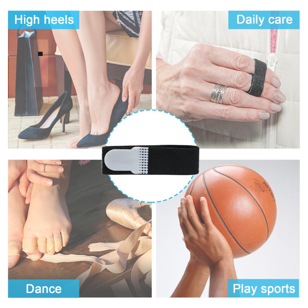 Hammer toe Wrap go on one toe and wrap around the other makes them easy to put on in seconds, easy one-handed application, even when nobody is around to assist. The adjustable strap fits any size fingers whether men or women.