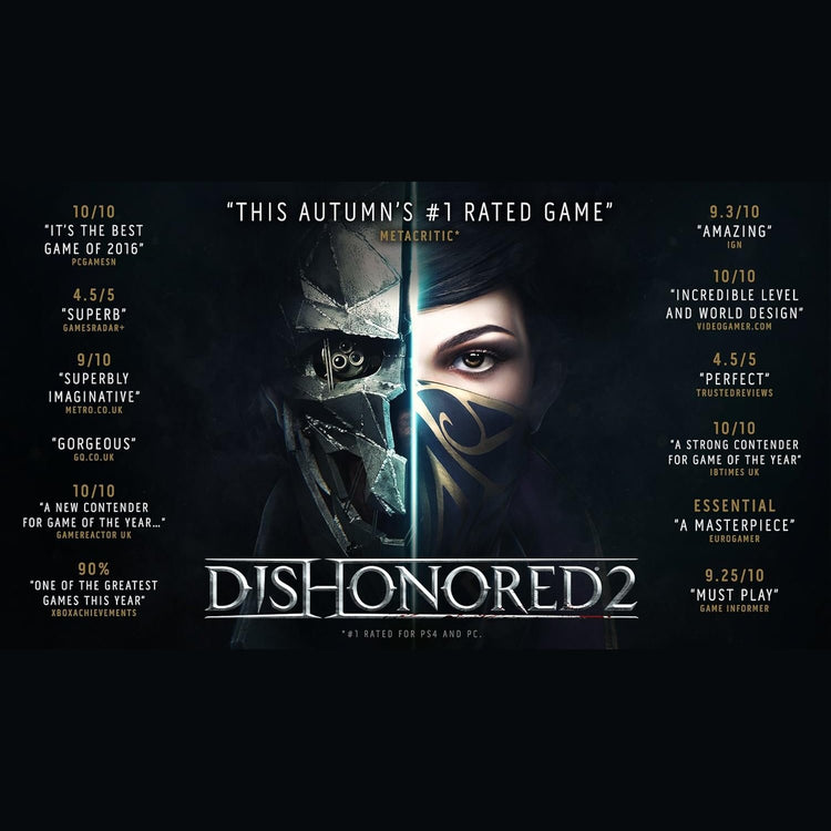 • Reprise your role as a supernatural assassin in Dishonored 2 – the follow up to Arkane Studio's first-person action blockbuster and winner of more than 100 'Game of the Year' awards, Dishonored. Play your way in a world where mysticism and industry collide. Will you choose to play as Empress Emily Kaldwin or the royal protector, Corvo Attano? Will you make your way through the game unseen, make full use of its brutal combat system, or use a blend of both? How will you combine your character's unique set of powers, weapons and gadgets to eliminate your enemies? The story responds to your choices, leading to intriguing outcomes, as you play through each of the game's hand-crafted missions.