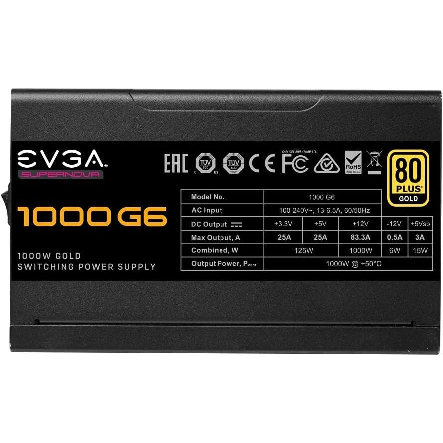 EVGA Supernova 1000 G6 Power Supply, 80 Plus Gold 1000W, Fully Modular, Includes Power on Self Tester