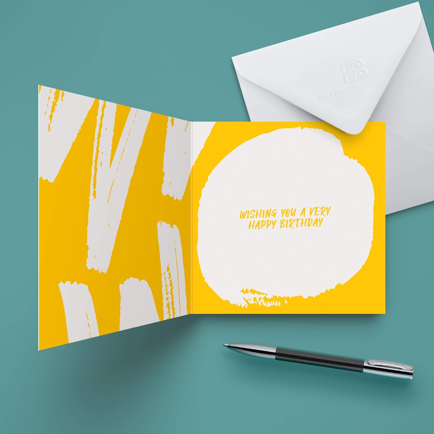 • Greeting card measures: 148mm x 148mm. Premium white envelope included: measures 150mm x 150mm