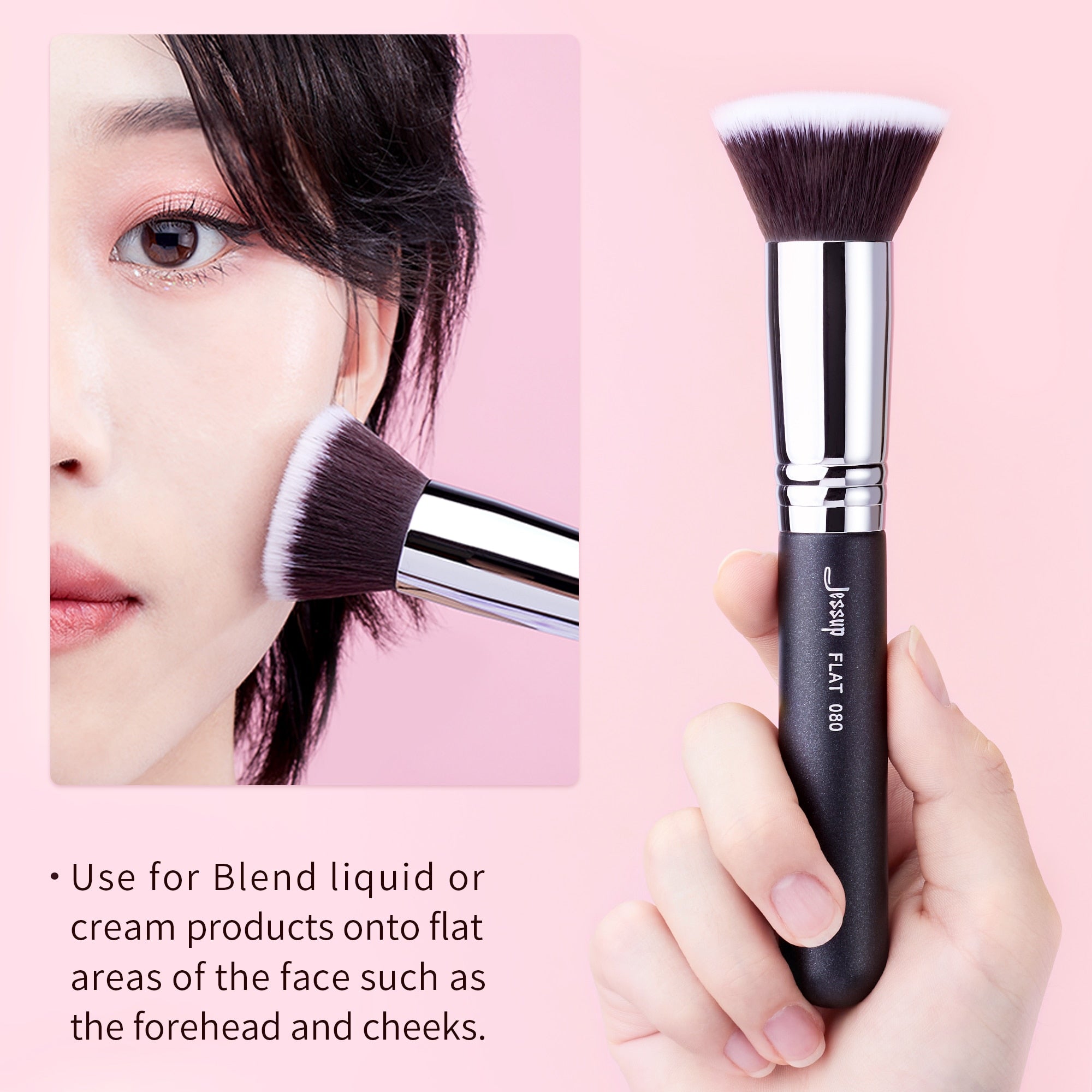 Use for Blend liquid or cream products onto flat areas of the face such as the forehead and cheeks.
