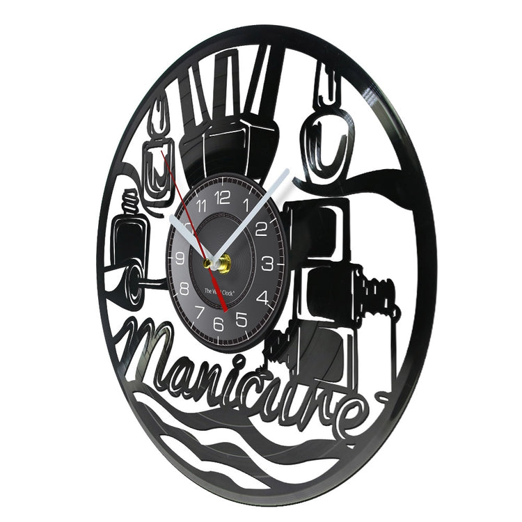 A: All clocks are made of 12 inch (30 cm) recycled vinyl records. Actual size after the cut out will vary depending on the shape.