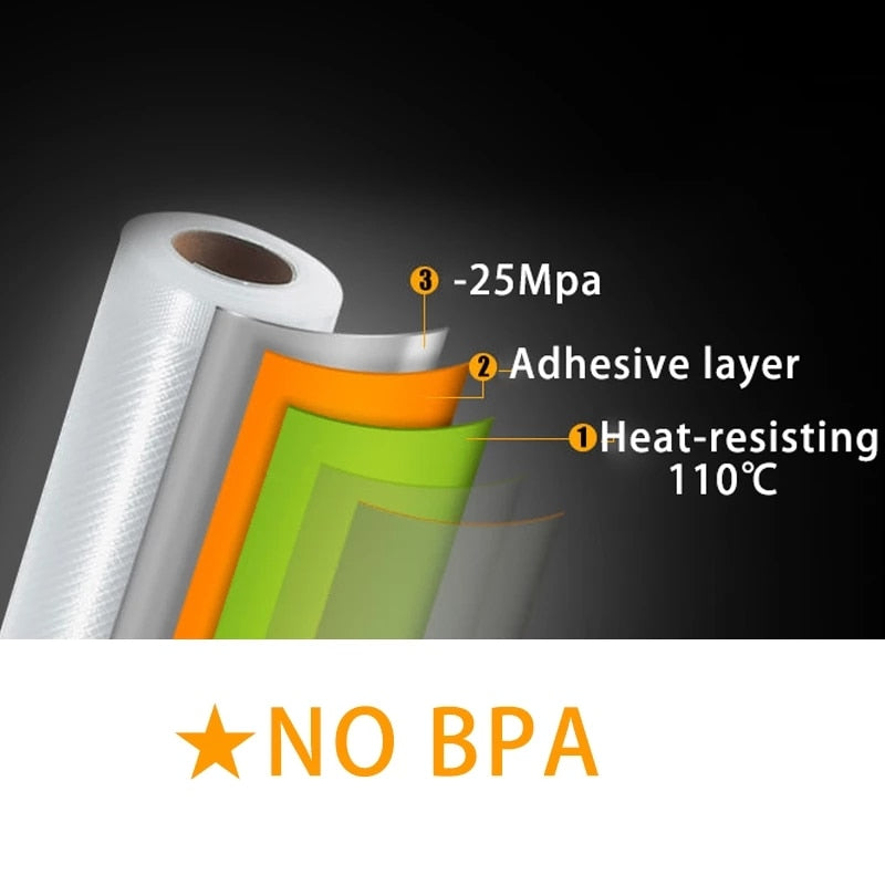 ✅【High Quality】:Two layers 4 mil heavy-duty vacuum sealer bags roll with embossed air-removal channel which are stable for heat and cold, boilable, freezable, microwave and dishwasher machines. Perfect for Sous Vide cooking. Eliminating freezer burn and dehydration to keep your food fresher, juicy and flavorful.