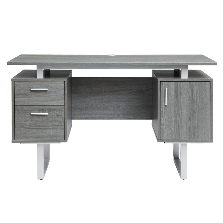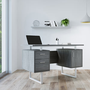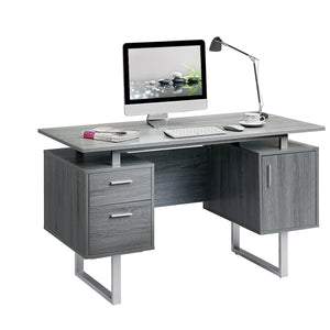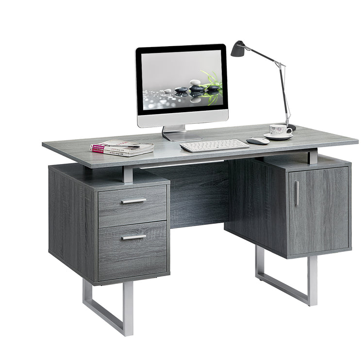 LONG DESCRIPTION : Techni Mobili Cubism is sleek and contemporary, this desk is the perfect combination of function, durability and design in a modern form. With clean lines, a floating top work station and sleek track metal legs, this desk will add pizzazz to any home office. Featuring two storage drawers and a file cabinet to help keep you organized with a large desktop surface to provide plenty of room for all your hardware and working needs. Color: Grey