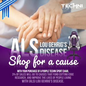 LONG DESCRIPTION : The Techni Sport TS-52 Ergonomic High Back Computer Racing Gaming Chair will put the pedal to the metal on productivity in any office or game room. Unlike regular office chairs, it gives an eye catching racer style appearance and modern look to spruce up any environment. The cool resemblance of a sport's car interior, will let your imagination ""race"" as you recline and swivel in superb comfort for gaming or work sessions lasting 8 hours or more. This ultimate computer gaming chair is made with synthetic TechniFlex upholstery and features a height adjustable seat, reclining back mechanism, tilt & tension mechanism control, ergonomic and adjustable headrest and lumbar support cushions, height adjustable and swivel armrests, and a durable color matching 5-star nylon base with color matching dual non-marking 2"" casters. 3% of sales go toward finding a cure for ALS. Seat adjusts from 18"" to 21.5"" high. Weight Capacity: 250Lbs. Color: Purple