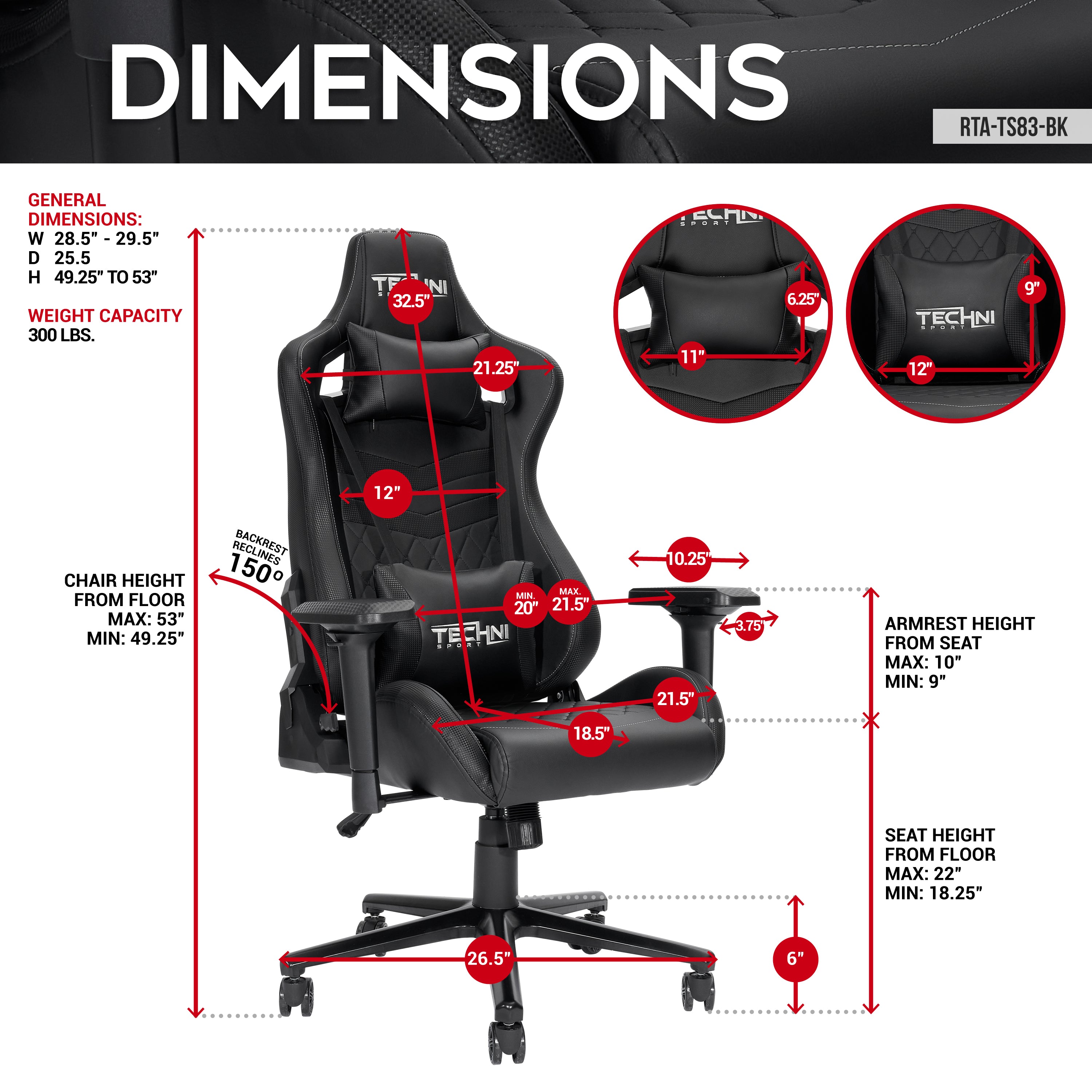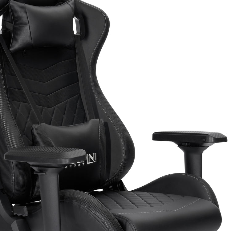 LONG DESCRIPTION : Techni Sport known for its taller back and wider than our standard frame, the TS83 Black Gaming Chair provides the ultimate comfort, style, and performance. This new addition to our Game Master Series comes in all black with white stitching details and will match any color gaming setup. The Game Master Series is one of the top choices for a luxurious feel. Take your gaming to the next level and extend your hours of sitting by adding extra features to your setup. Loaded with our most advanced 4D armrests, reinforced steel base and frame, you are shopping for the best gaming chair in the market, while supporting a noble cause.