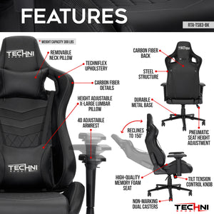 SHORT DESCRIPTION : The Techni Sport TS83 Black Gaming Chair provides the ultimate comfort, style, and performance. This new addition to our Game Master Series comes in all black with white stitching details and will match any color gaming setup. Loaded with our most advanced 4D armrests, reinforced steel base and frame, you are shopping for the best gaming chair in the market