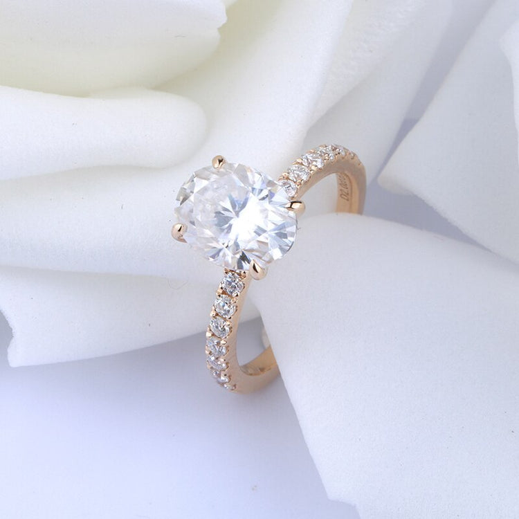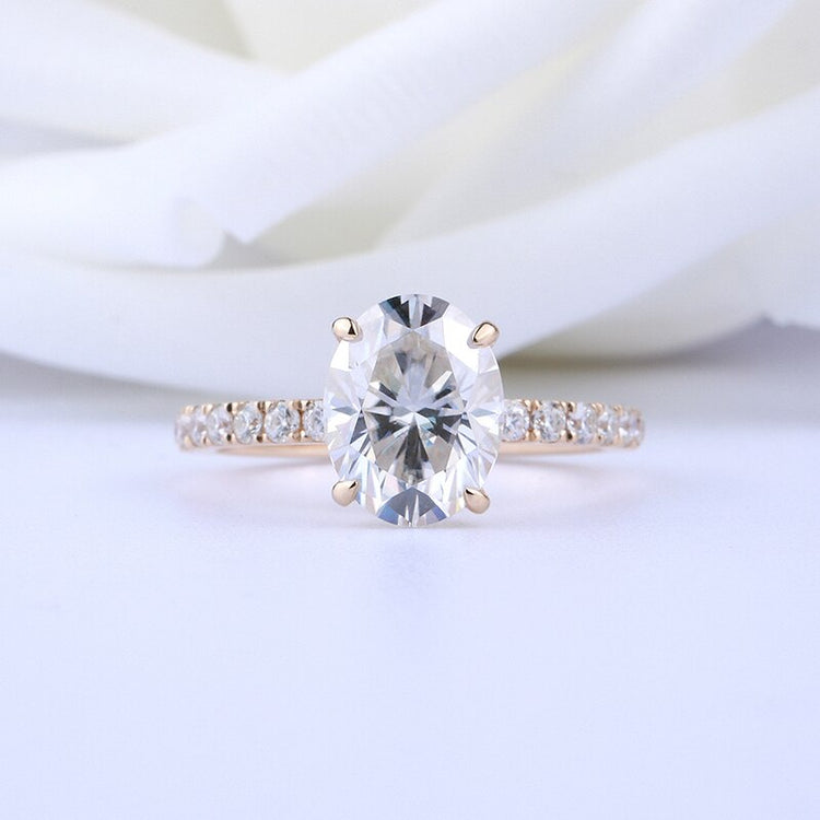 Main Stone Size: 1.5ct 6X8mm Oval Cut Moissanite