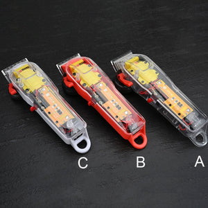 • Accessories: 4 guide combs(3/6/10/13mm),cleaning brush, USB cable and adapter. • Extra accessories: Hair comb, rubber ring,Stagger-teeth ceramic blade and 2 pcs guide comb(1.5/4.5mm).