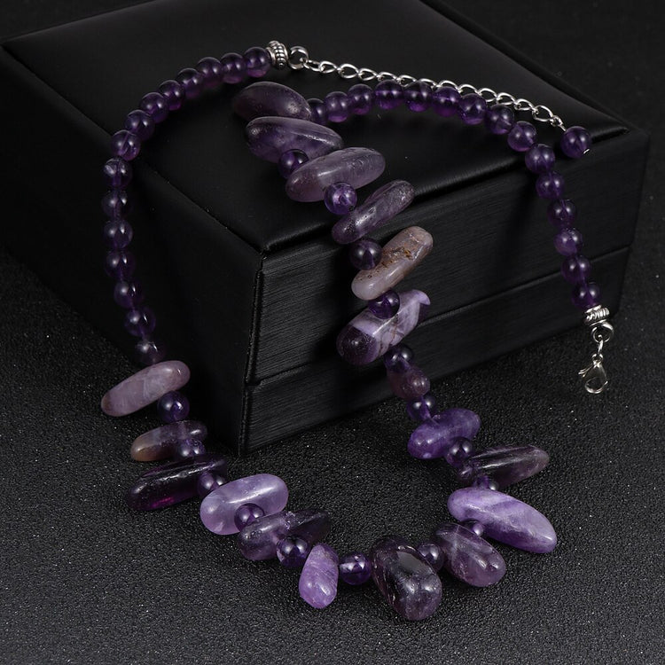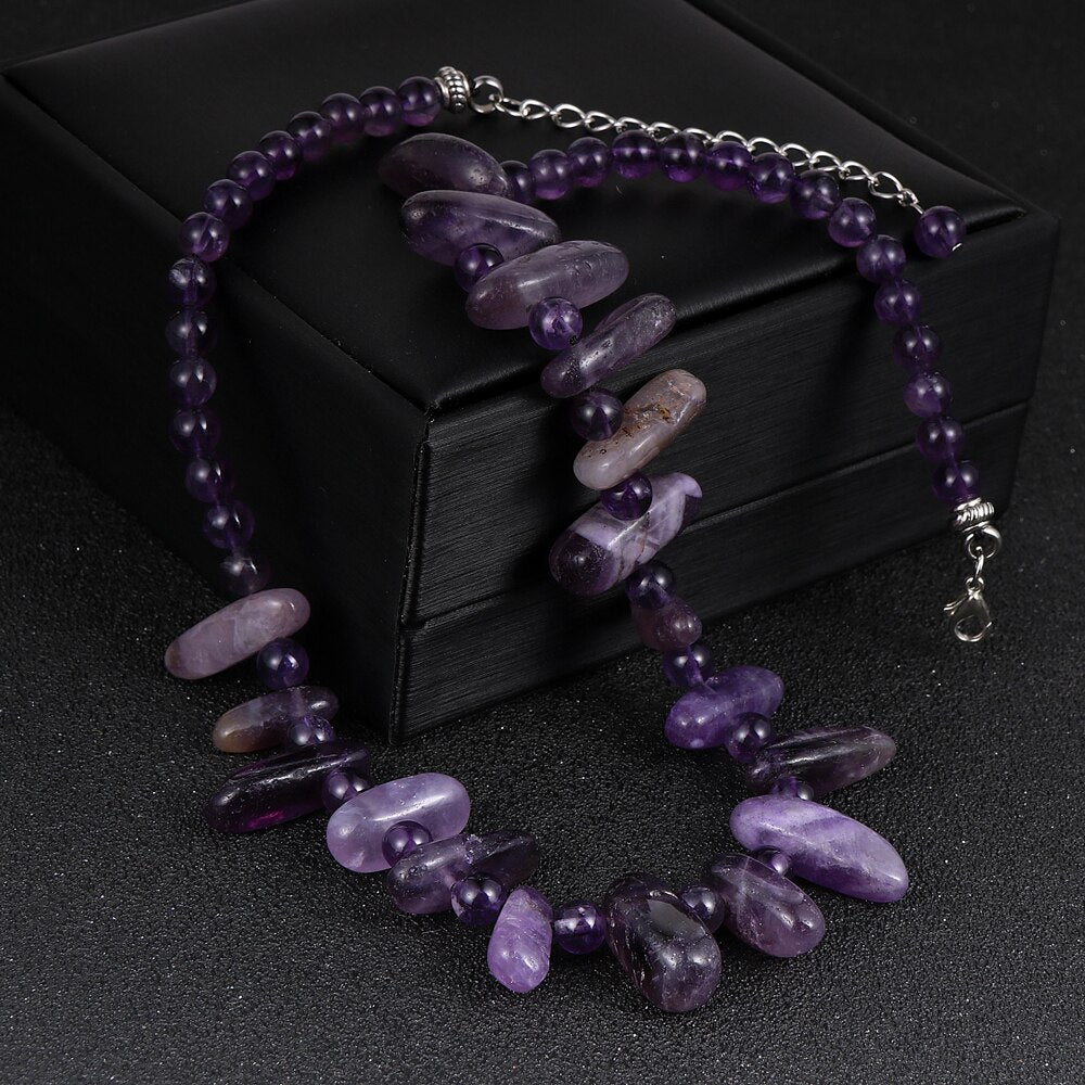 Item:: Women Natural Stone Amethysts India Onyx Lapis Lazuli Necklace